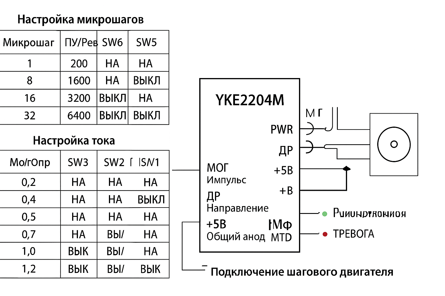 Микрошаговая настройка: 4 уровня постоянного крутящего момента, до 32 микрошагов